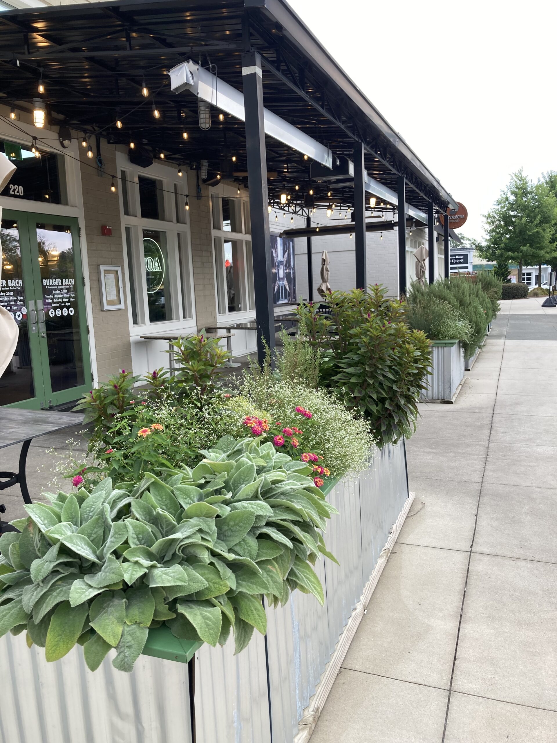 Container Plant Installation Restaurant PatioWe are excited to offer design, installation, and maintenance services for commercial container plantings in Durham. Whether you have existing containers or are starting from scratch, the first step of any comprehensive commercial container planting design is a consultation. During the consultation, we will assess the site conditions, discuss design preferences and determine your budget.